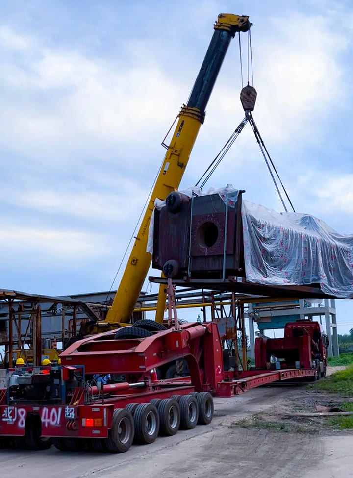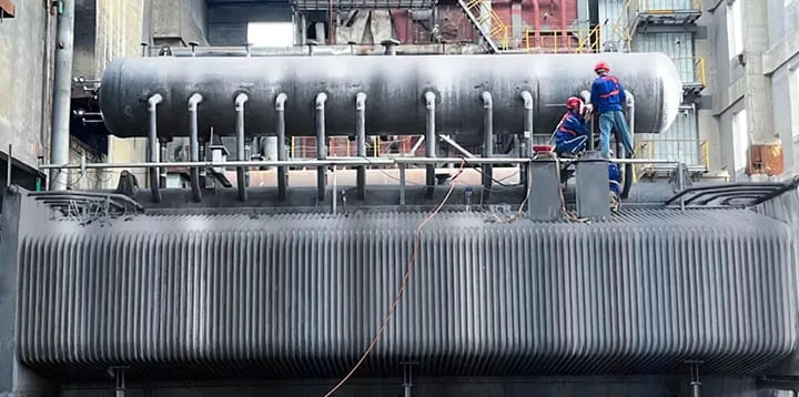 獨特思路,整裝就位。“FKG水管鍋爐”采用三鍋筒的設計思路,在雙鍋筒的基礎上增加一個置頂鍋筒,增加上升管中含汽區段的高度飽和水與汽水混合物的密度差,從而保證鍋爐的運行安全。值得一提的是,“FKG系列水管鍋爐”為分體整裝式設計,由五大區域組成,既可滿足運輸條件,又具備快速安裝的優勢。