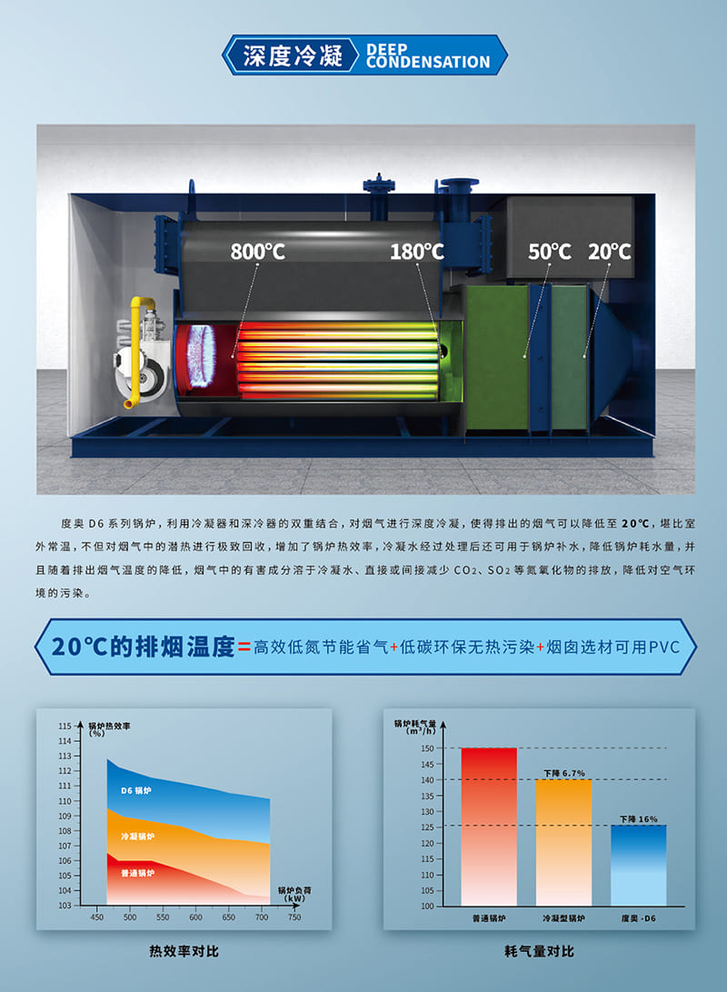 4.冷凝式低氮承壓鍋爐具備很高的熱效率(充分利用能源和良好的能源效率)