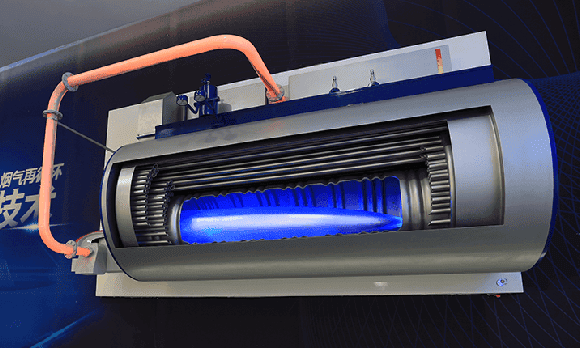 鍋爐燃燒器的火焰被冷卻水管包圍,通過冷卻水管的冷卻水帶走熱量,降低火焰溫度,從而破壞氮氧化物生成條件。通常搭配預(yù)混燃燒技術(shù)一起使用,預(yù)混燃燒可有效縮小火焰長度,較短的火焰可充分被冷卻水管進(jìn)行降溫,可有效降低 NOx 排放濃度。
